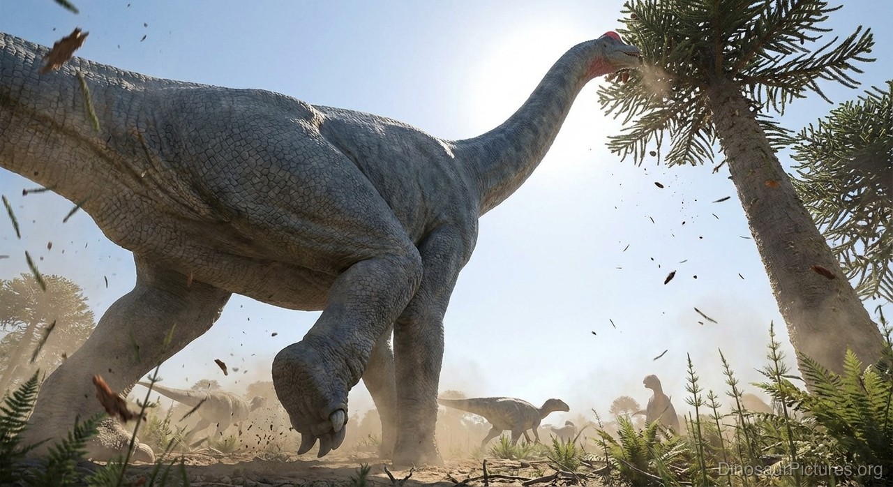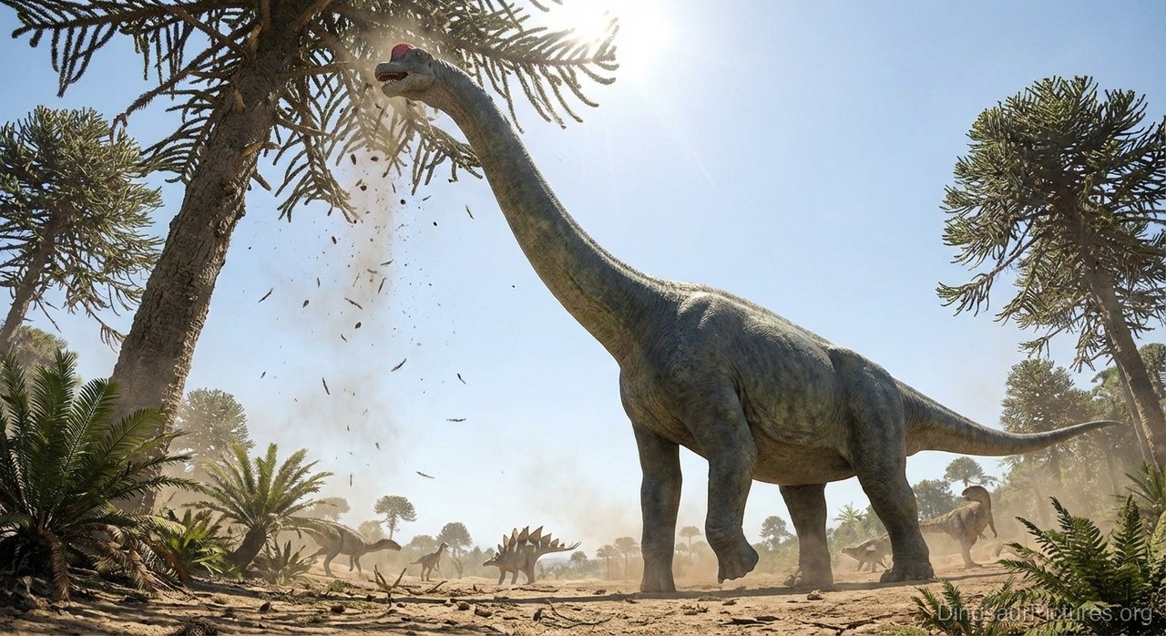 Unlike many other sauropods, which orient themselves lengthwise along the ground, the Brachiosaurus’ posture is directed upward. Many researchers believe this enabled it to reach the higher limbs of treetops and vegetation, in much the same manner as a giraffe.