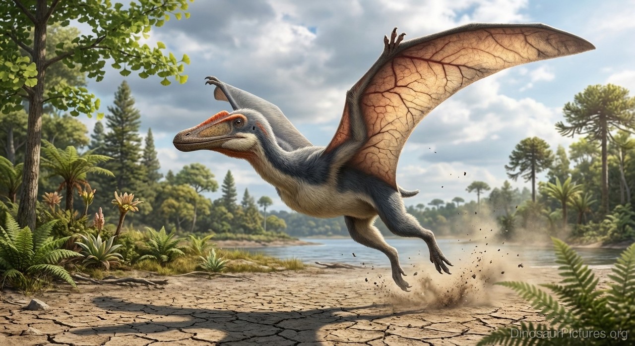 Meilifeilong was a pterosaur, a type of flying reptile. It was not a dinosaur, though it lived during the same period. Meilifeilong lived during the Early Cretaceous and resided in Asia.